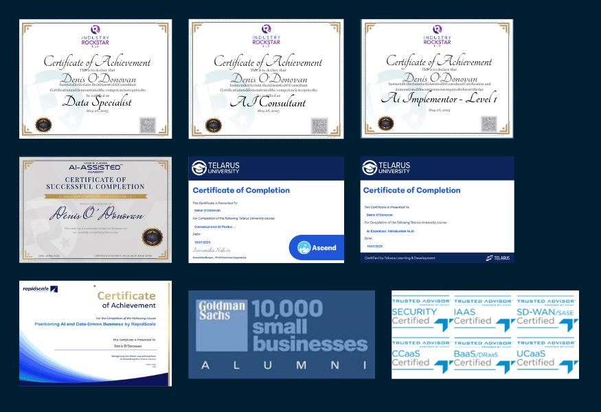 To back that expertise, we’ve earned numerous industry-recognized certifications that reflect our commitment to staying ahead in the AI space. These credentials demonstrate our ability to guide organizations through AI implementation, workflow automation, and data-driven decision-making, ensuring every recommendation is grounded in real knowledge and capability.